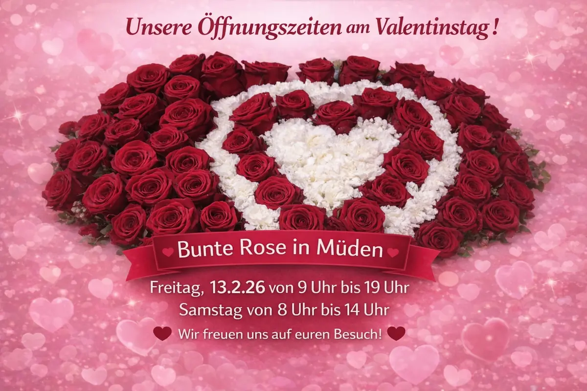 Unsere Öffnungszeiten am Valentinstag🌹 Bunte Rose By Olga 🌺