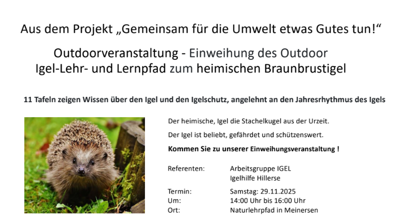 Einweihung des Outdoor Igel-Lehr- und Lernpfad zum heimischen Braunbrustigel