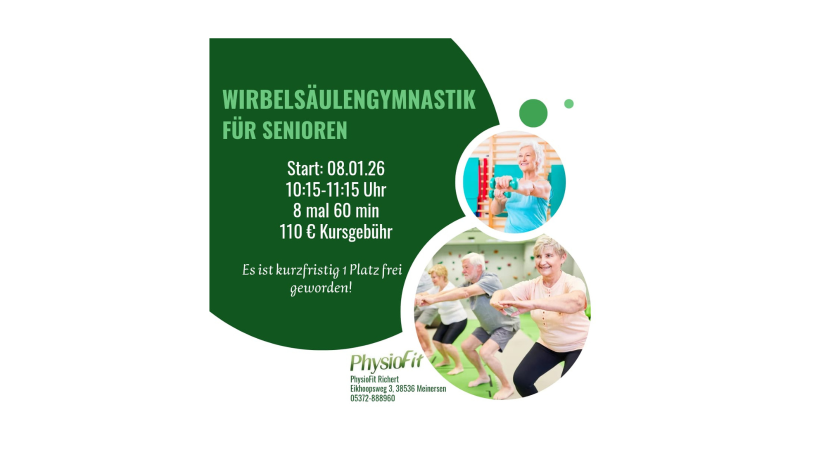 Wirbelsäulengymnastik für Senioren - Kurzfristig 1 Platz für den Kurs ab Januar freigeworden!