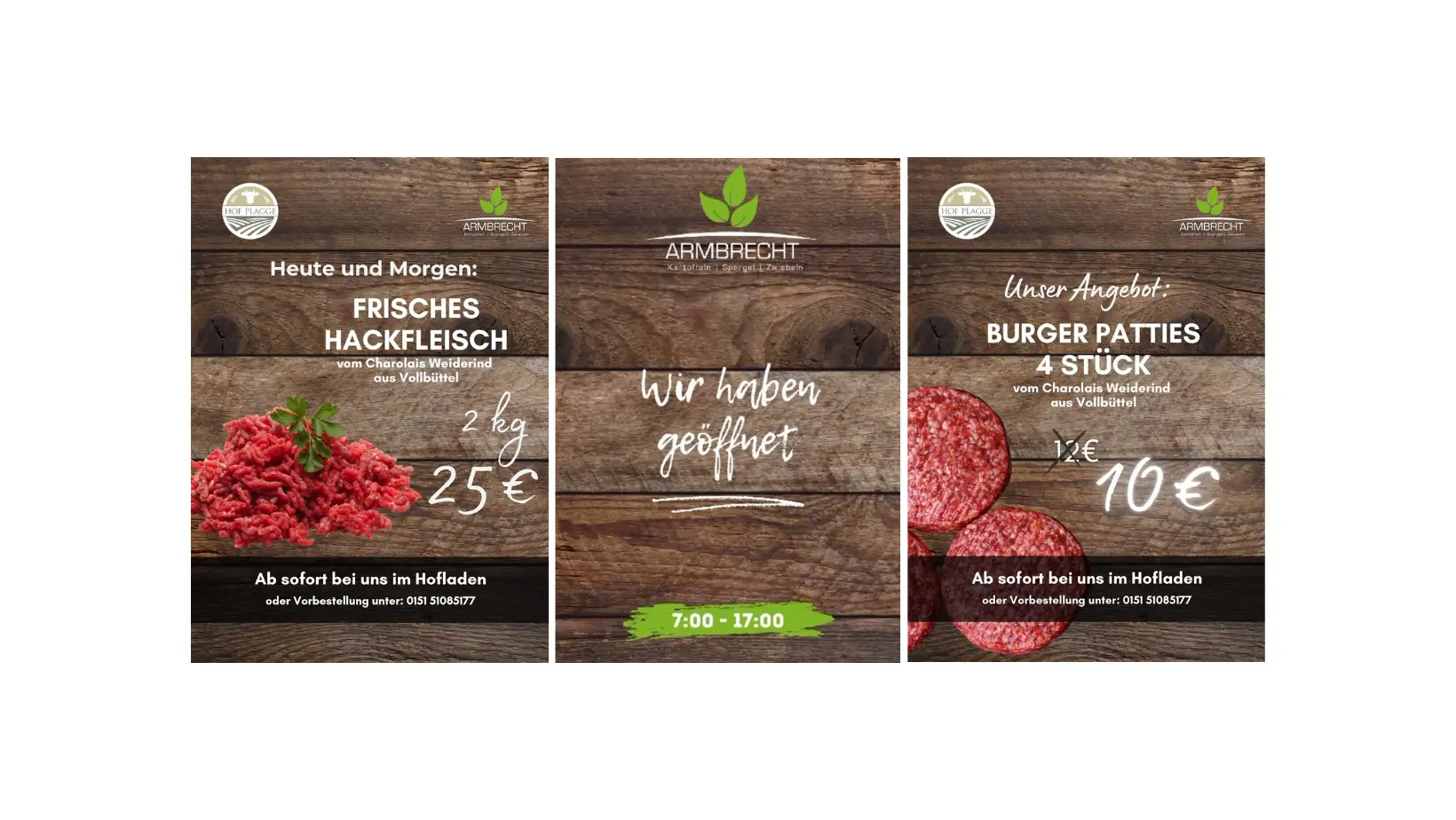 Unsere Angebote für heute und morgen: Frisches Hack, Burger-Patties & mehr – direkt vom Hof Armbrecht.