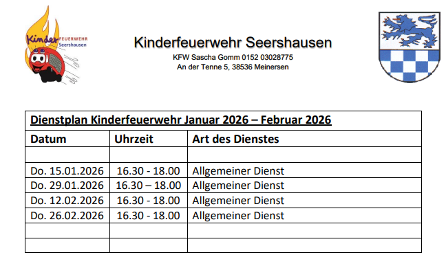 Werde ein Teil der Kinderfeuerwehr Seershausen (Dienstplan Jan-Feb)