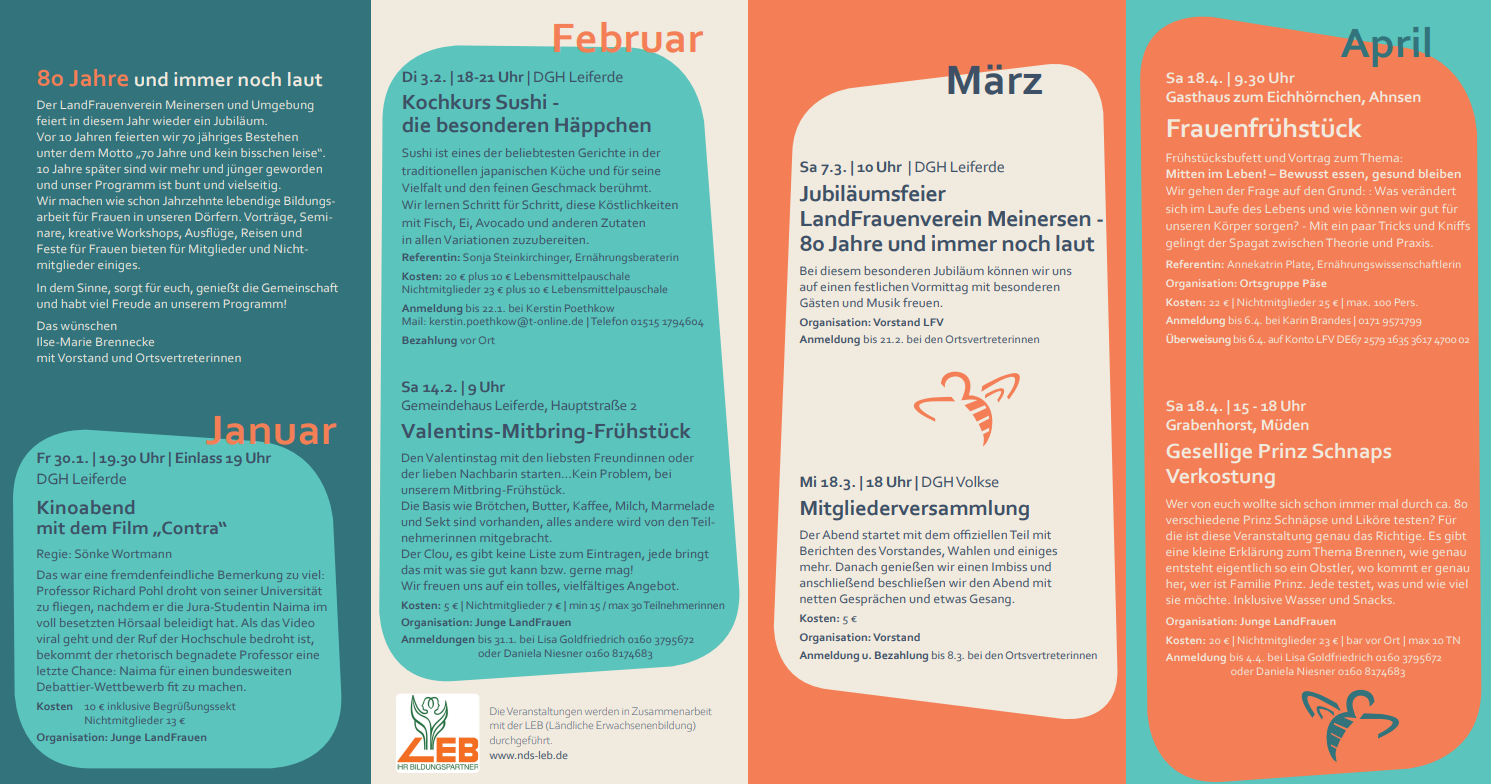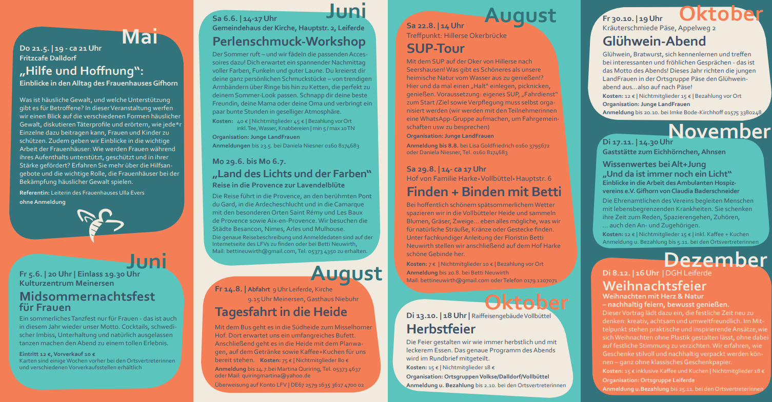 Vorträge, Seminare, kreative Workshops, Ausflüge, Reisen und Feste für Frauen bieten für Mitglieder und Nichtmitglieder einiges.