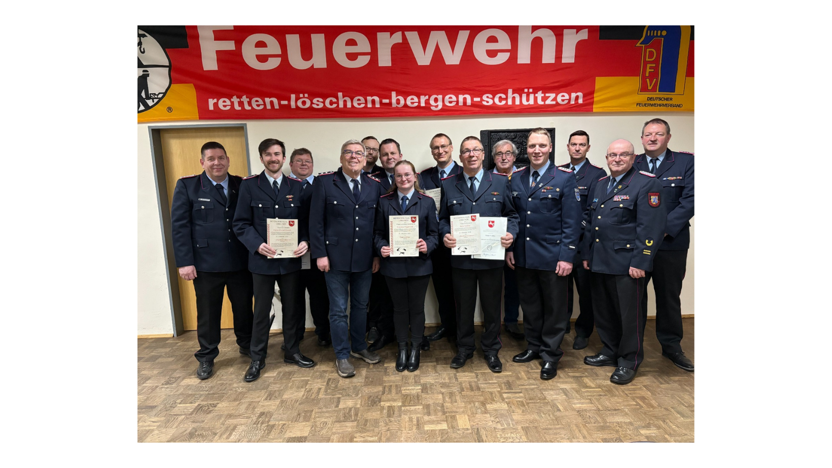 Alexander Fortuna und Sören Grietsch wurden zum Feuerwehrmann befördert, Madeleine Roggensack zur Feuerwehrfrau. Darius Massek, Philip Nicks sowie Detlef Szalies wurden Oberfeuerwehrmänner.