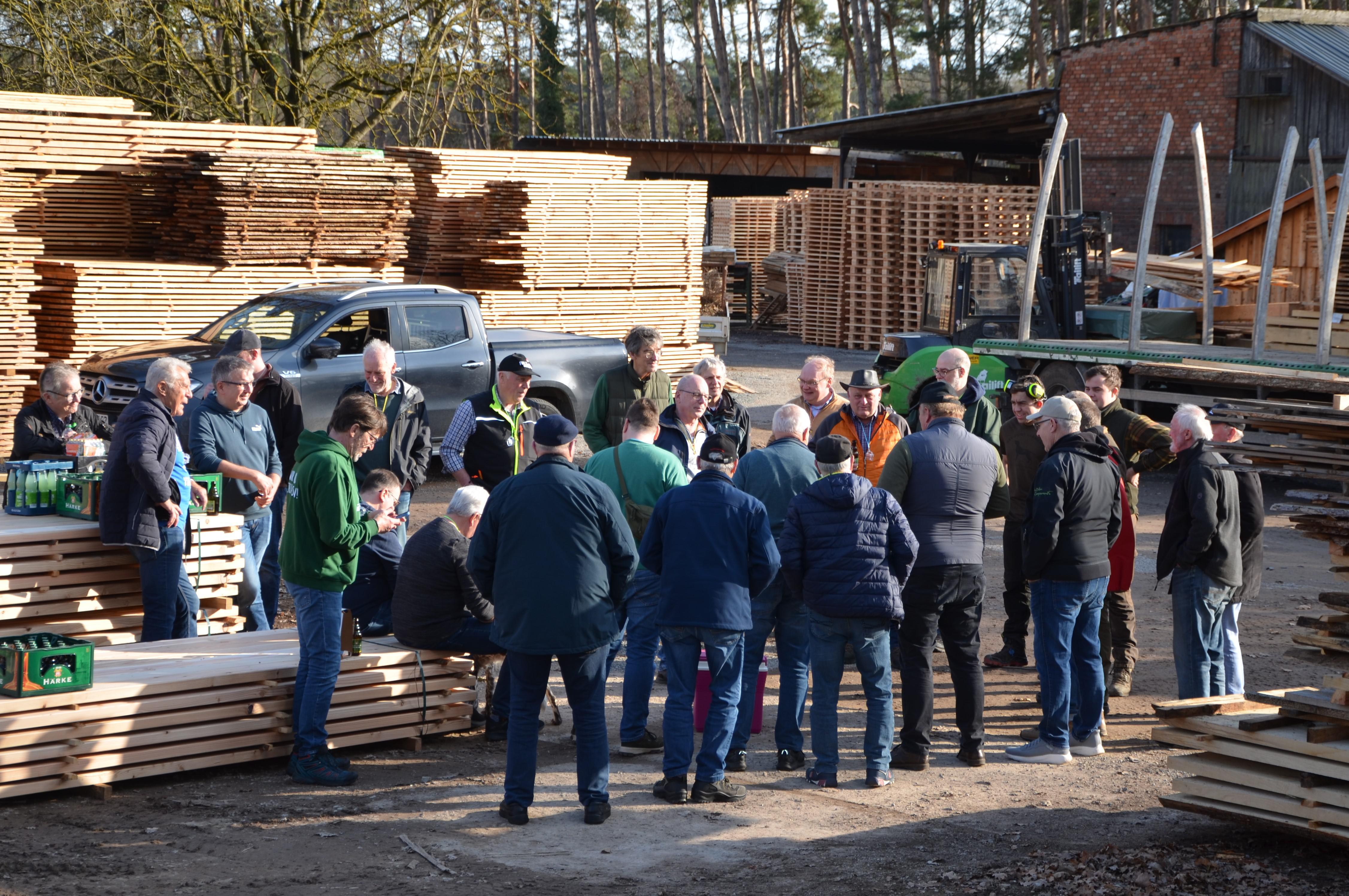 Dort wurde die Wandergruppe von **Ralf Heuer** und seinen Söhnen zu einer Pause inmitten frisch geschnittener Hölzer begrüßt und bewirtet.