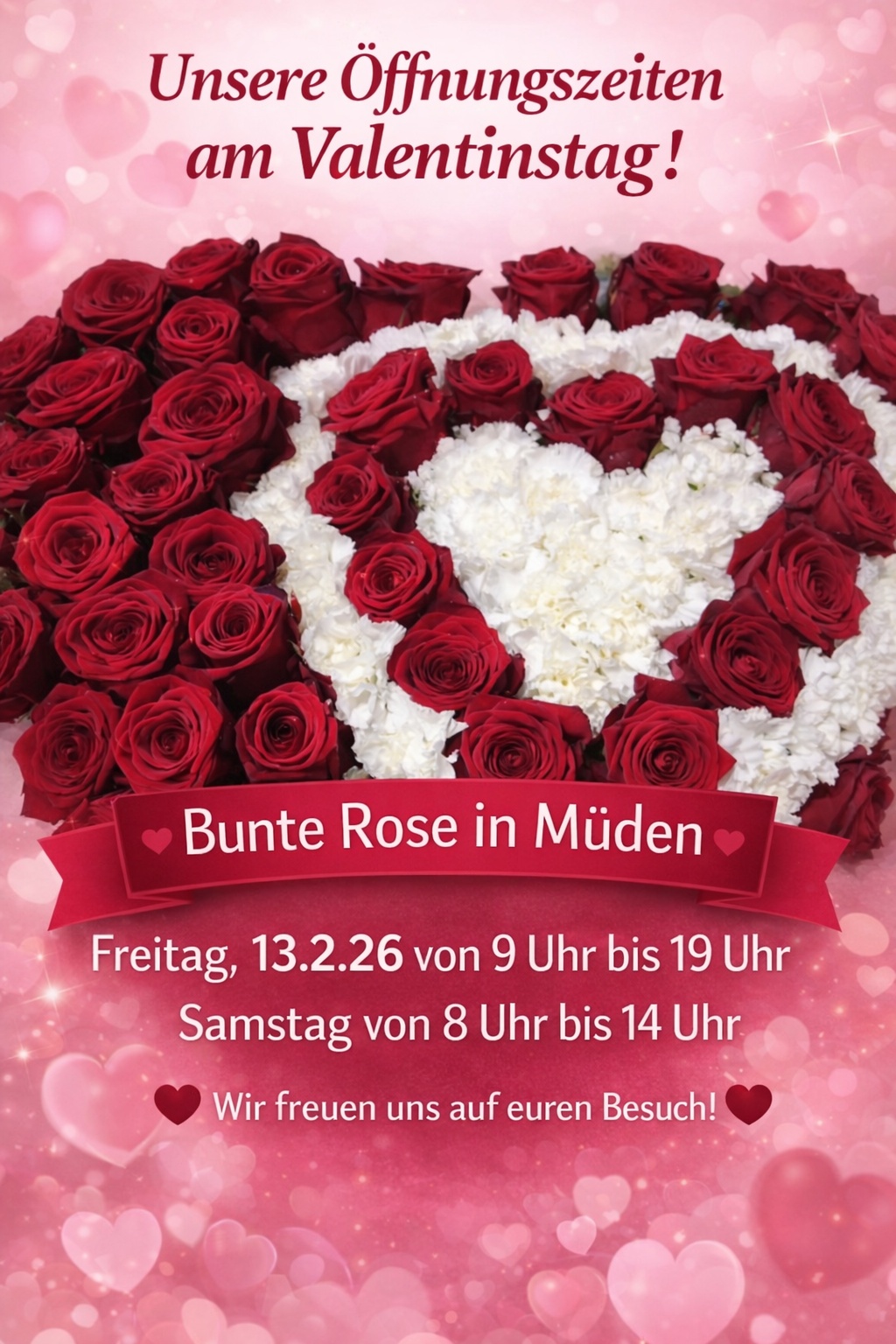 Unsere Öffnungszeiten am Valentinstag🌹 Bunte Rose By Olga 🌺