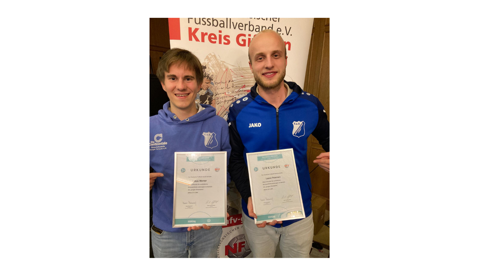 Unser Spartenleiter Lukas Werner und stellvertretender Jugendleiter Lasse Petersen wurden vom NFV Gifhorn im Rahmen der Aktion „Fußballhelden – Junges Ehrenamt“ für ihren starken Einsatz ausgezeichnet. 👏