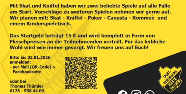 SV Volkse-Dalldorf lädt am 10.01.2026 zum traditionellen Knobel- & Kartenturnier ein.
