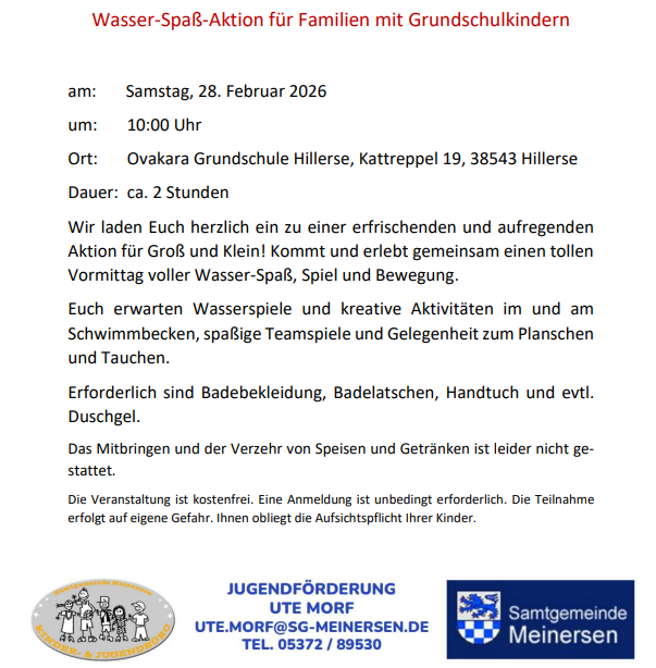 Wasser-Spaß-Aktion für Familien mit Grundschulkindern