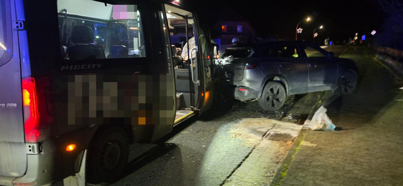 Hier war es zu einem Unfall zwischen einem als Kleinbus für den öffentlichen Personennahverkehr ausgebauten Mercedes Benz Sprinter und einem Renault Austral gekommen.