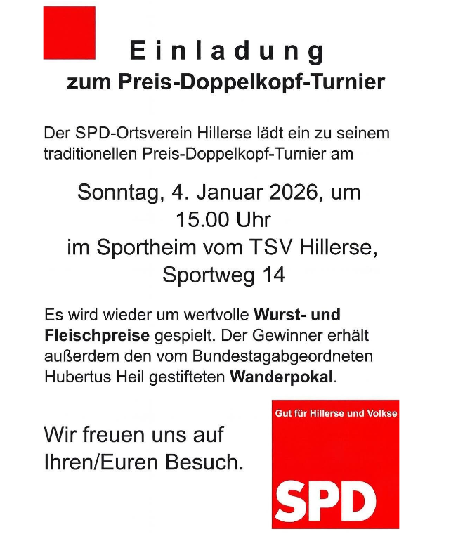 Einladung zum Preis-Doppelkopf-Turnier am 04.01.26