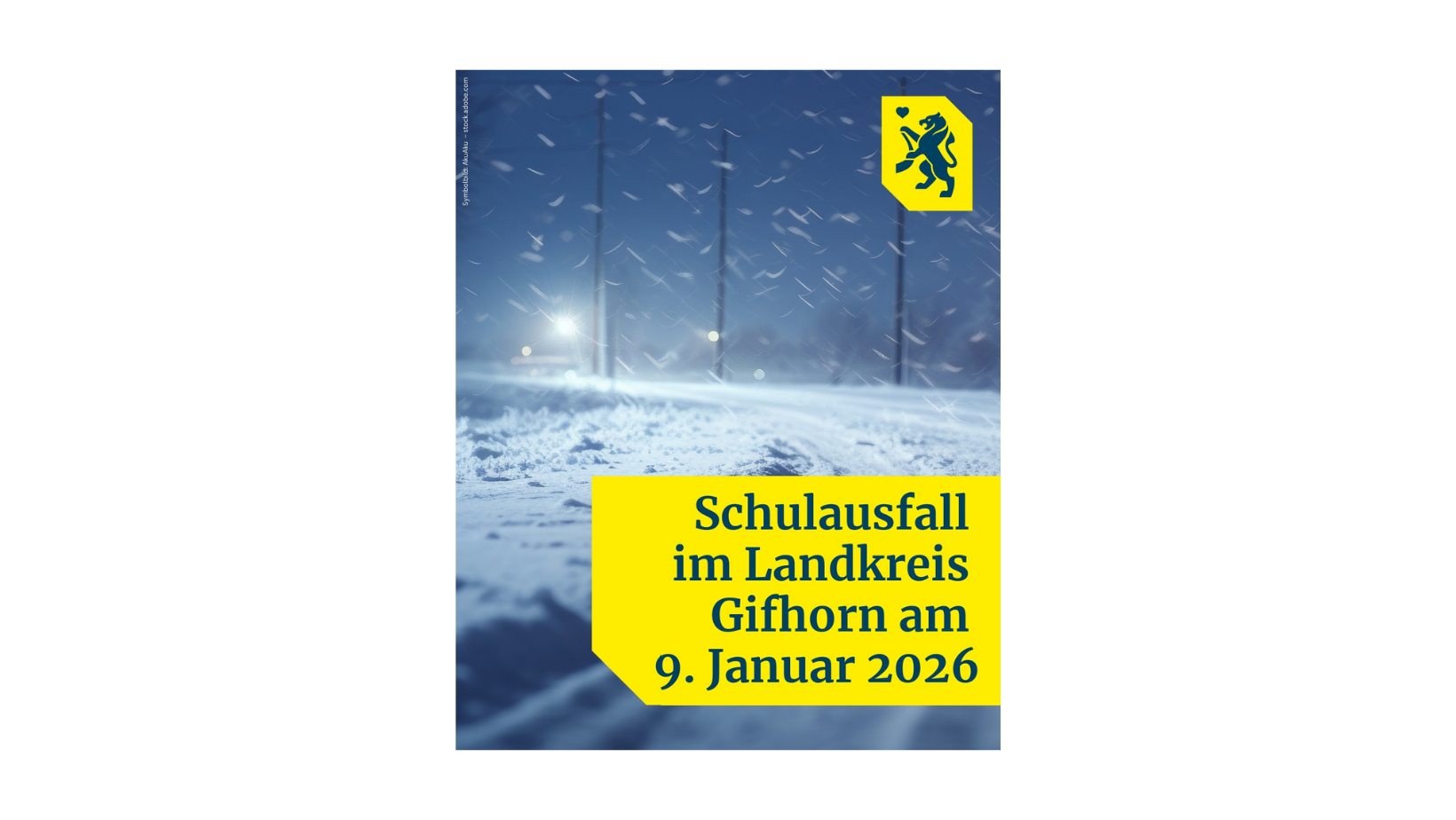 Im Landkreis Gifhorn, einschließlich der Stadt Gifhorn, fällt der Unterricht an allen allgemeinbildenden Schulen am Freitag, 09.01.2026 aufgrund der extremen Witterungsverhältnisse aus.
