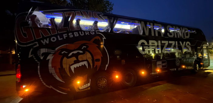 Mit dem Vereinsbus der Grizzlies machten wir uns mit insgesamt 51 Teilnehmerinnen und Teilnehmern auf den Weg. Wir wurden gemeinsam abgeholt, sicher zum Eishockeystadion nach Wolfsburg gefahren und nach dem Spiel wieder nach Hause gebracht. Für einige war es der erste Besuch bei einem Eishockeyspiel, was das Erlebnis umso spannender machte.