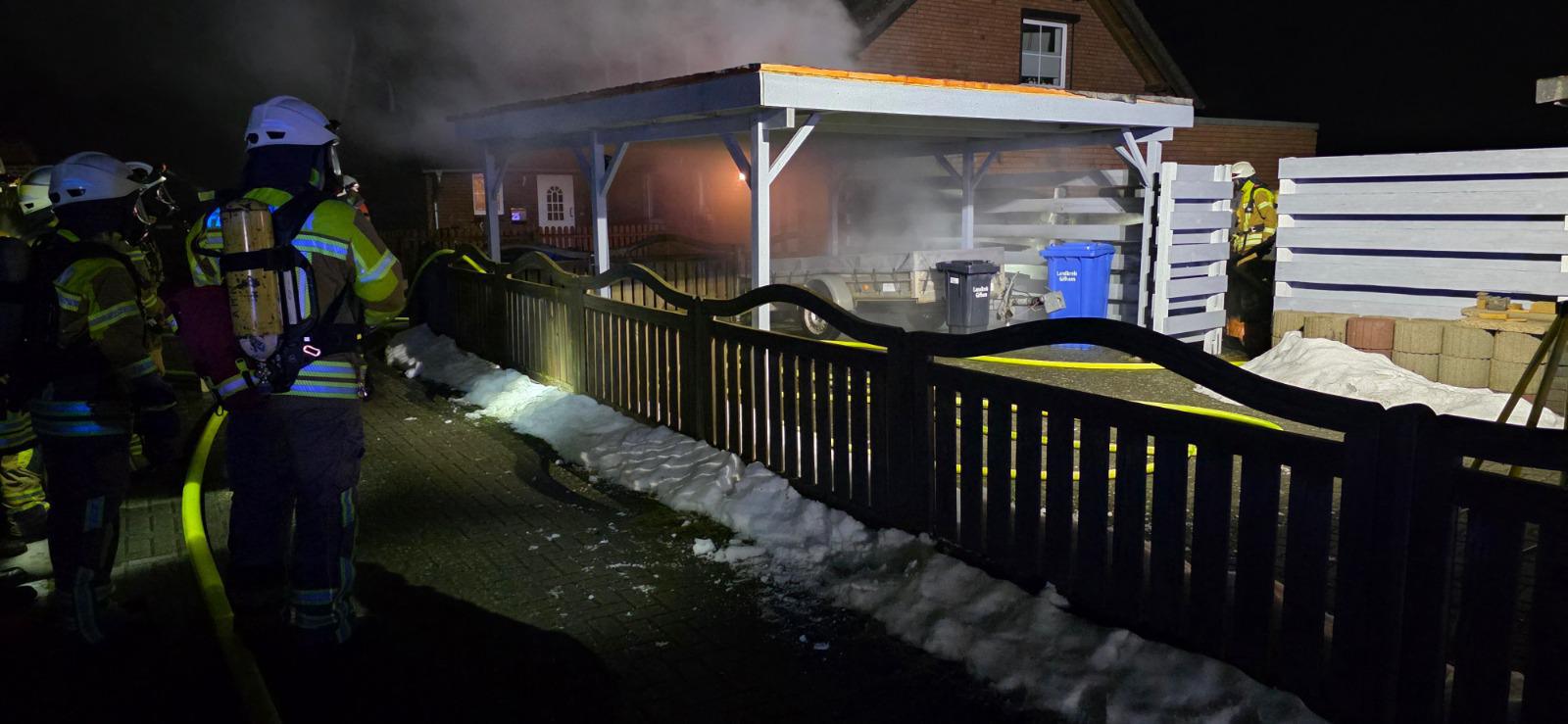 Außerdem verhinderten sie das Übergreifen der Flammen auf ein Carport sowie auf eine Garage.