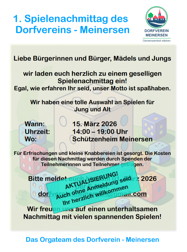 Meinerser Spielenachmittag am 15.03.26 für alle Bürger und Bürgerinnen! Auch ohne Anmeldung seid Ihr herzlich willkommen!