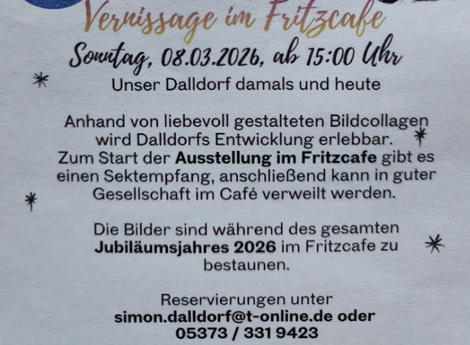 800 Jahre Dalldorf - Vernissage im Fritzcafe am 08.03.26