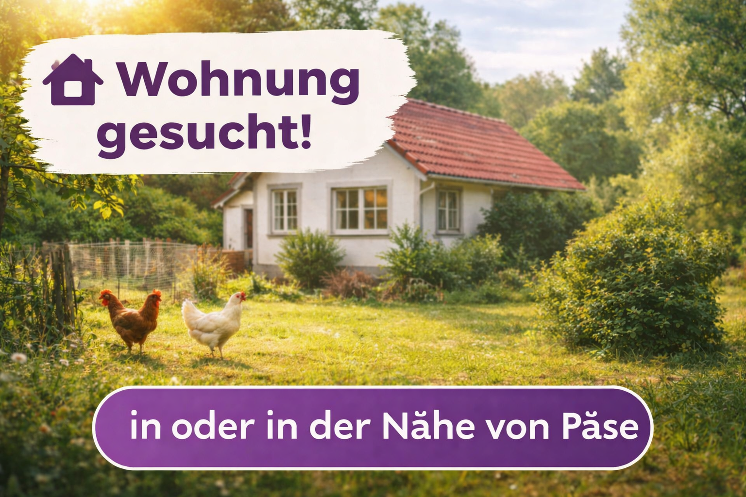 Dringend Wohnung rund um Päse für junge Frau und zwei Katzen gesucht; im Idealfall mit Möglichkeit zur Haltung für 3 Hühner.