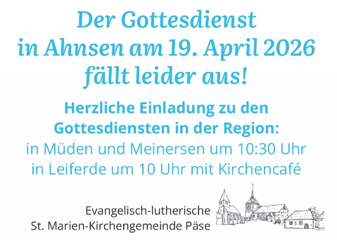 Gottesdienst in Ahnsen am 19.04.26 fällt aus!
