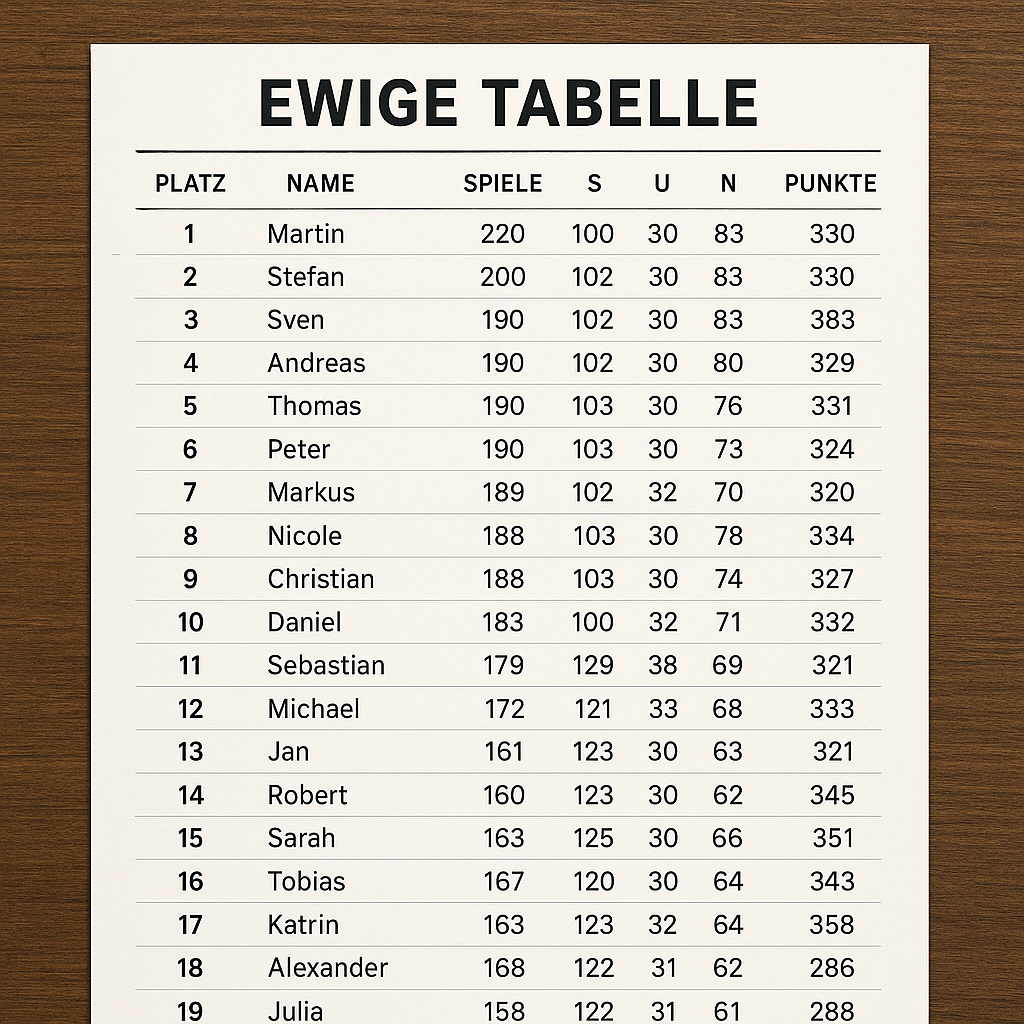 -  Ewige Tabellen mit allen bisherigen Punkten