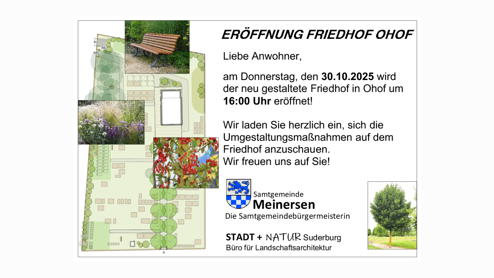 am Donnerstag, den 30.10.2025 wird der neu gestaltete Friedhof in Ohof um 16:00 Uhr eröffnet!