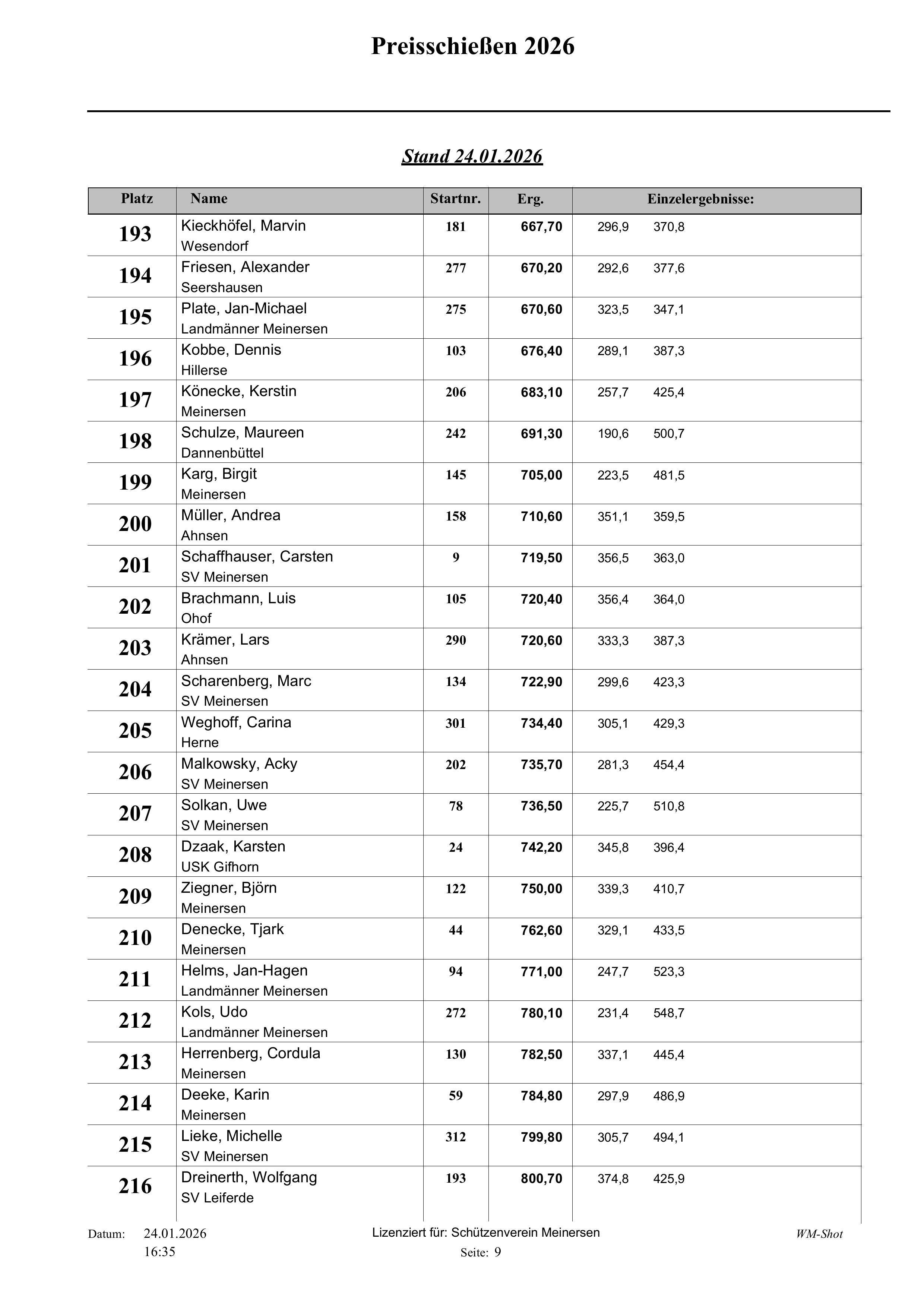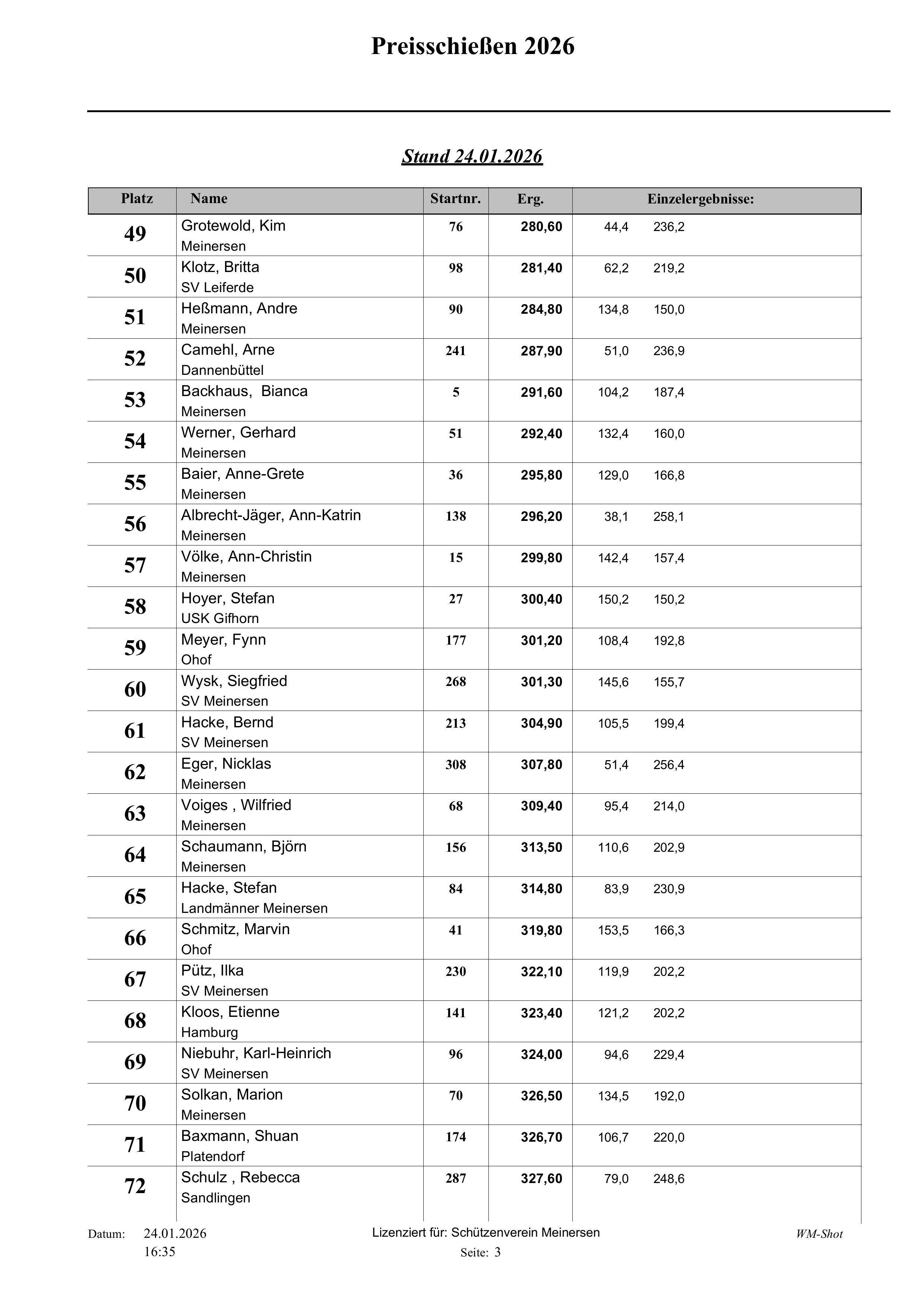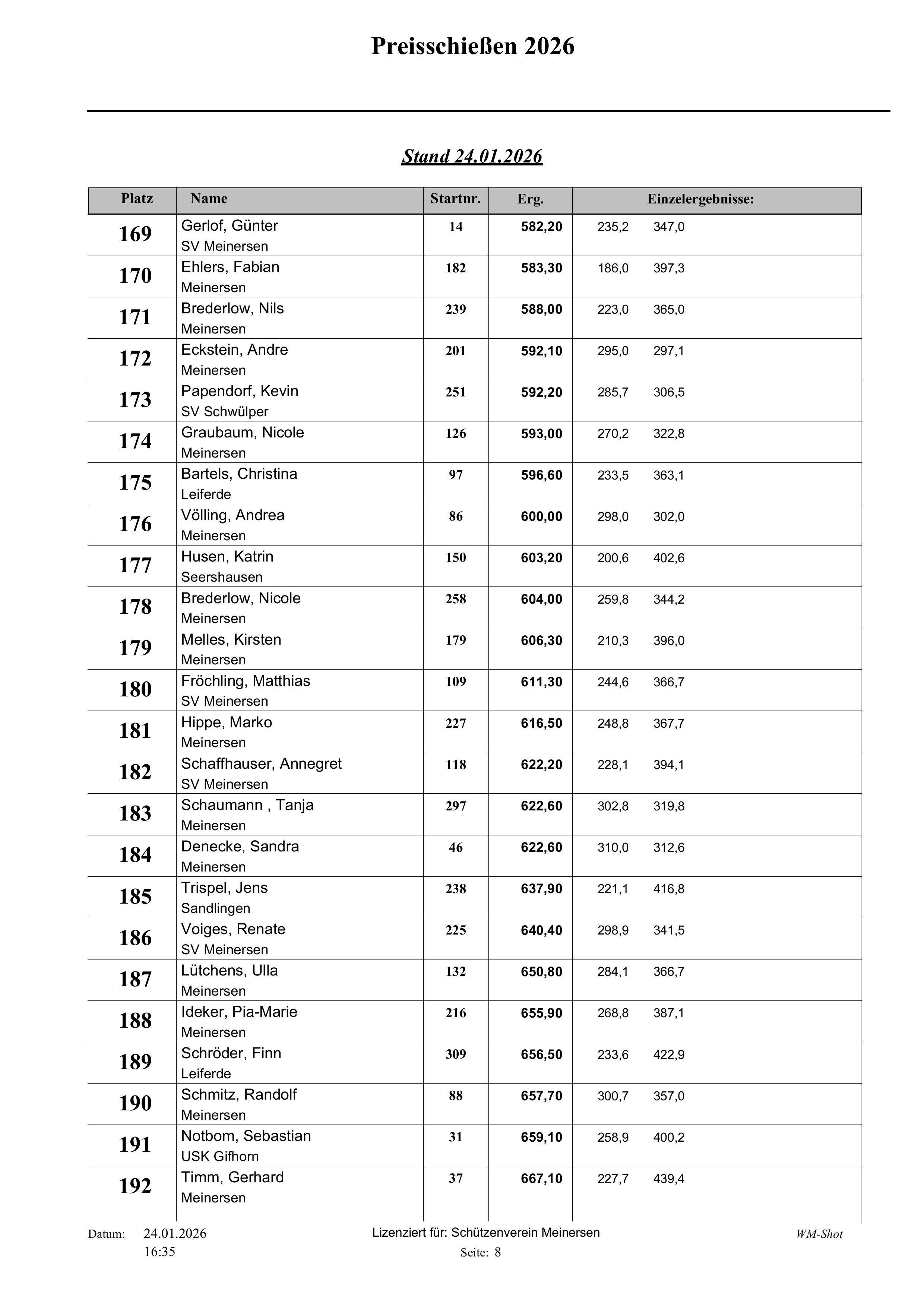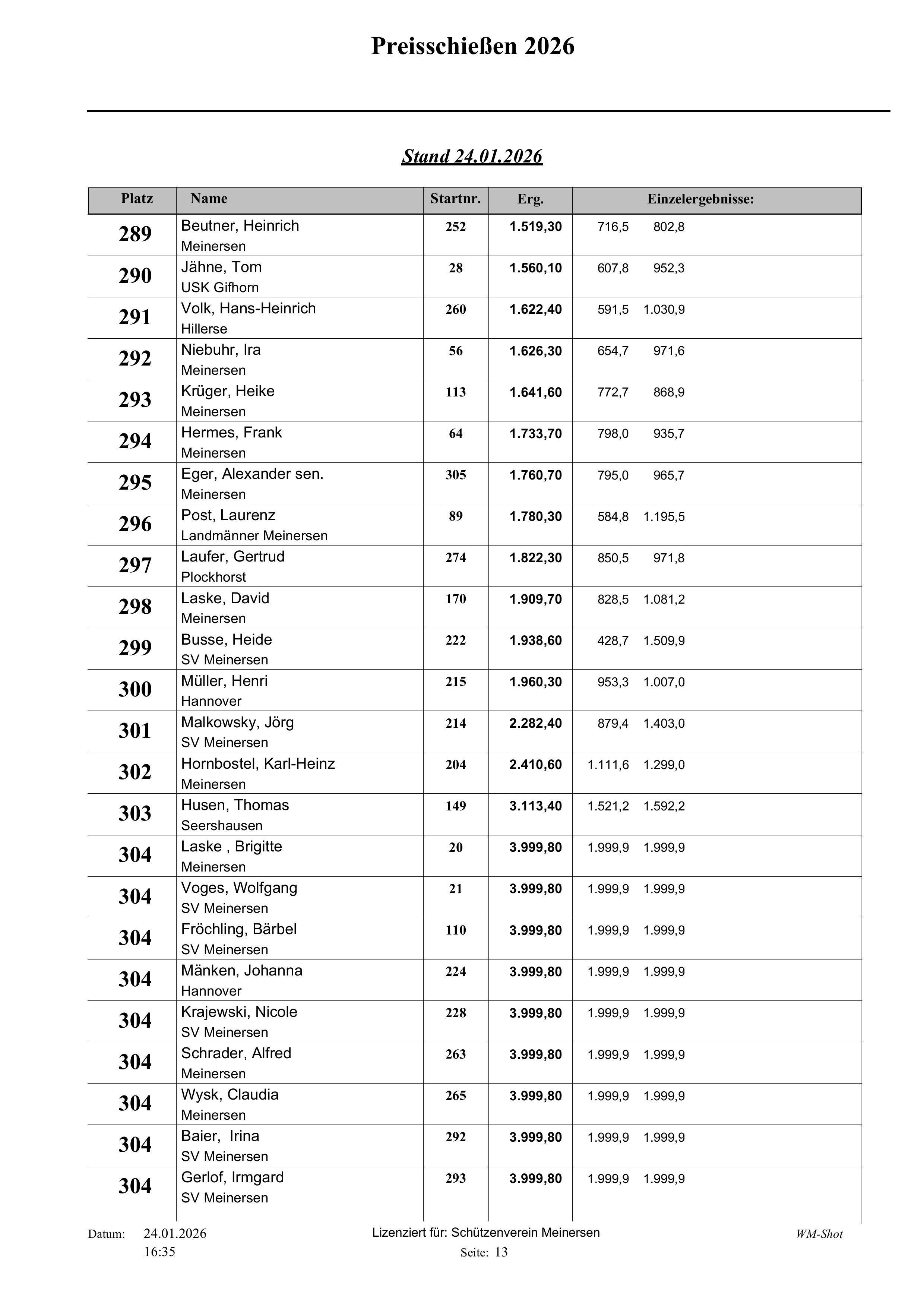Fast 320 Teilnehmer haben in den letzten 13 Tagen am diesjährigen Preisschießen beim Schützenverein Meinersen teilgenommen.