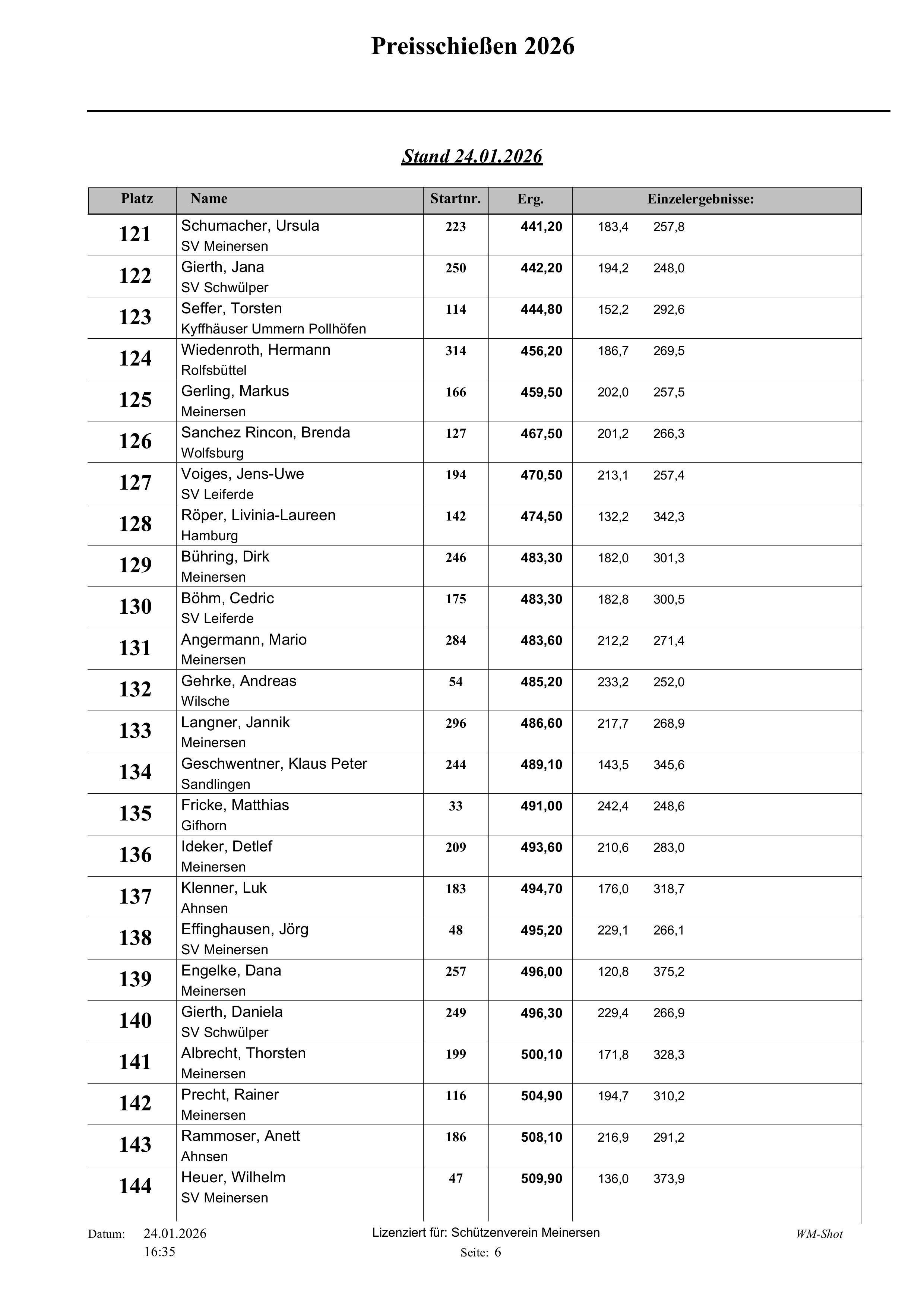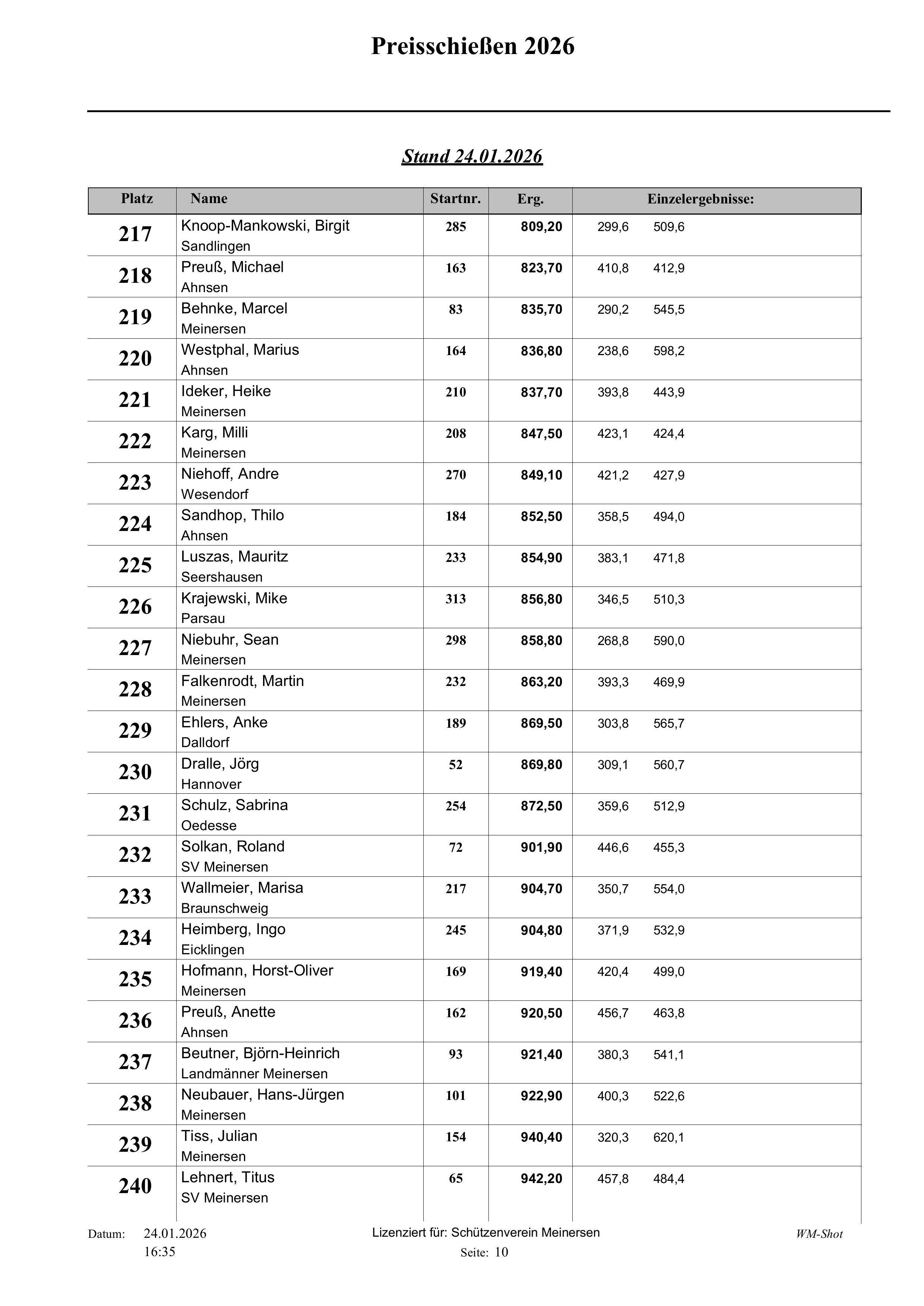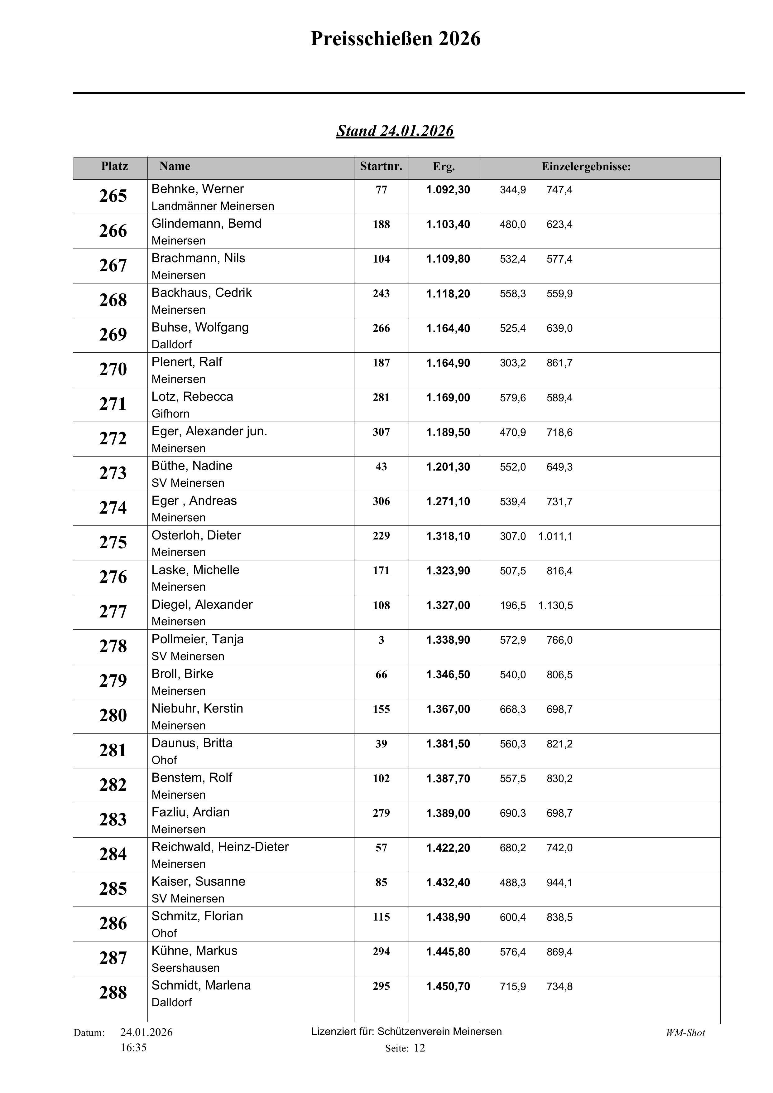 Fast 320 Teilnehmer haben in den letzten 13 Tagen am diesjährigen Preisschießen beim Schützenverein Meinersen teilgenommen.