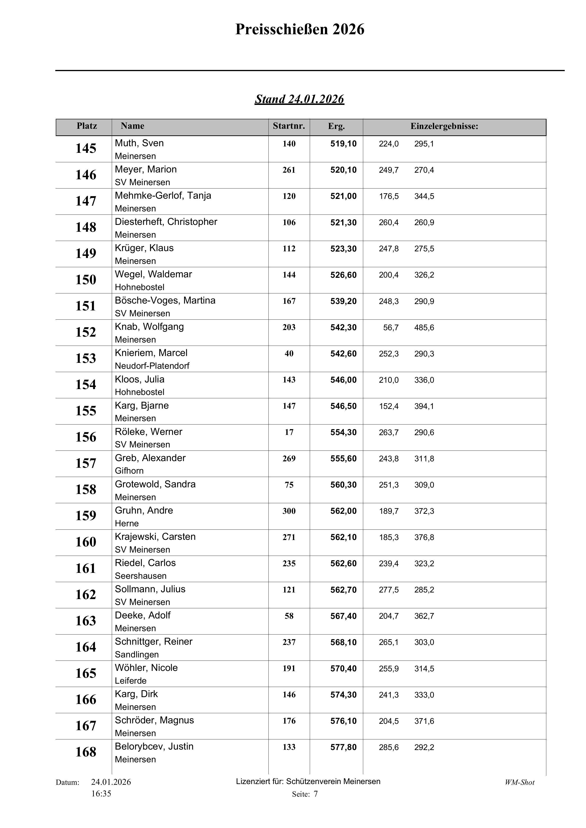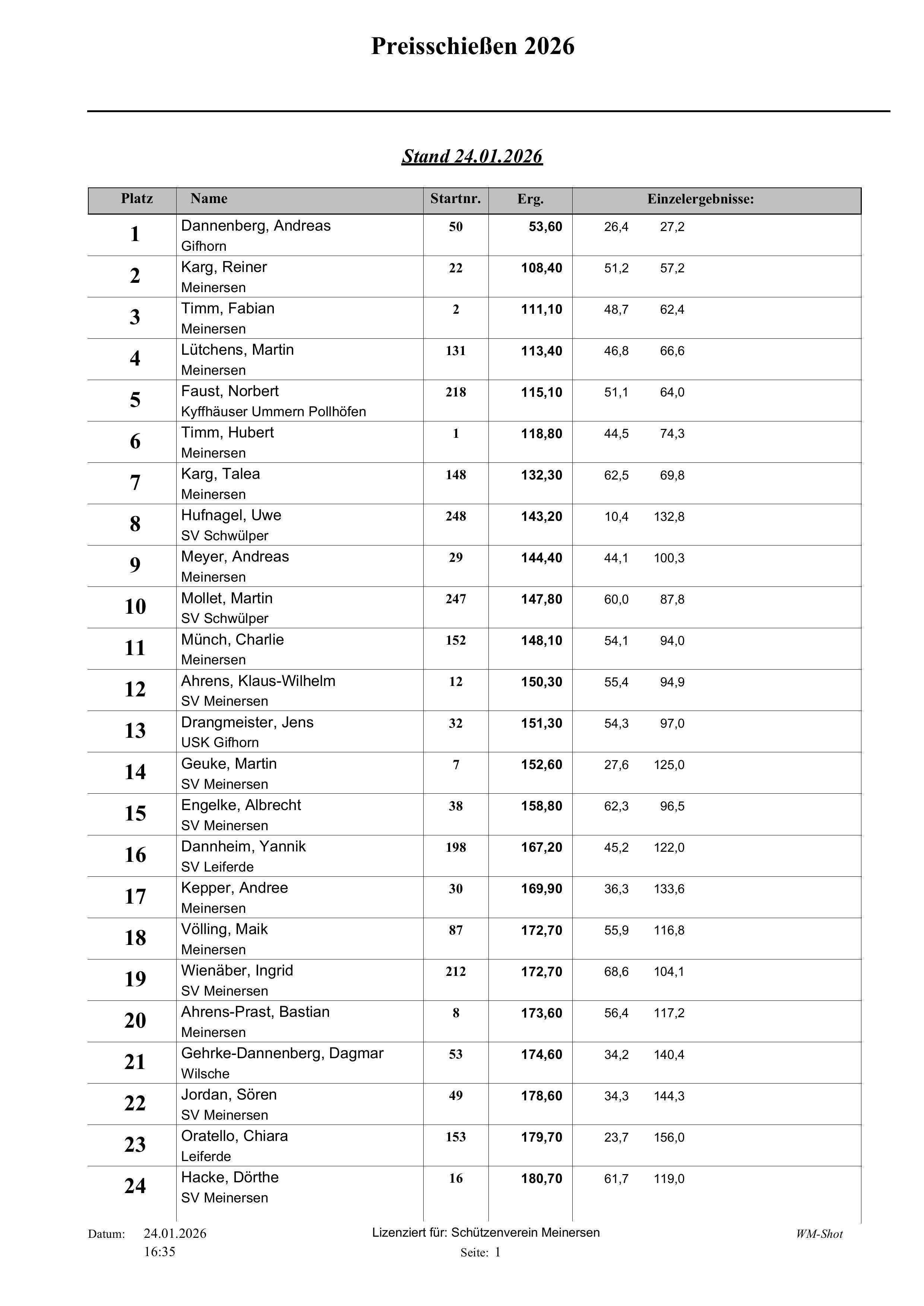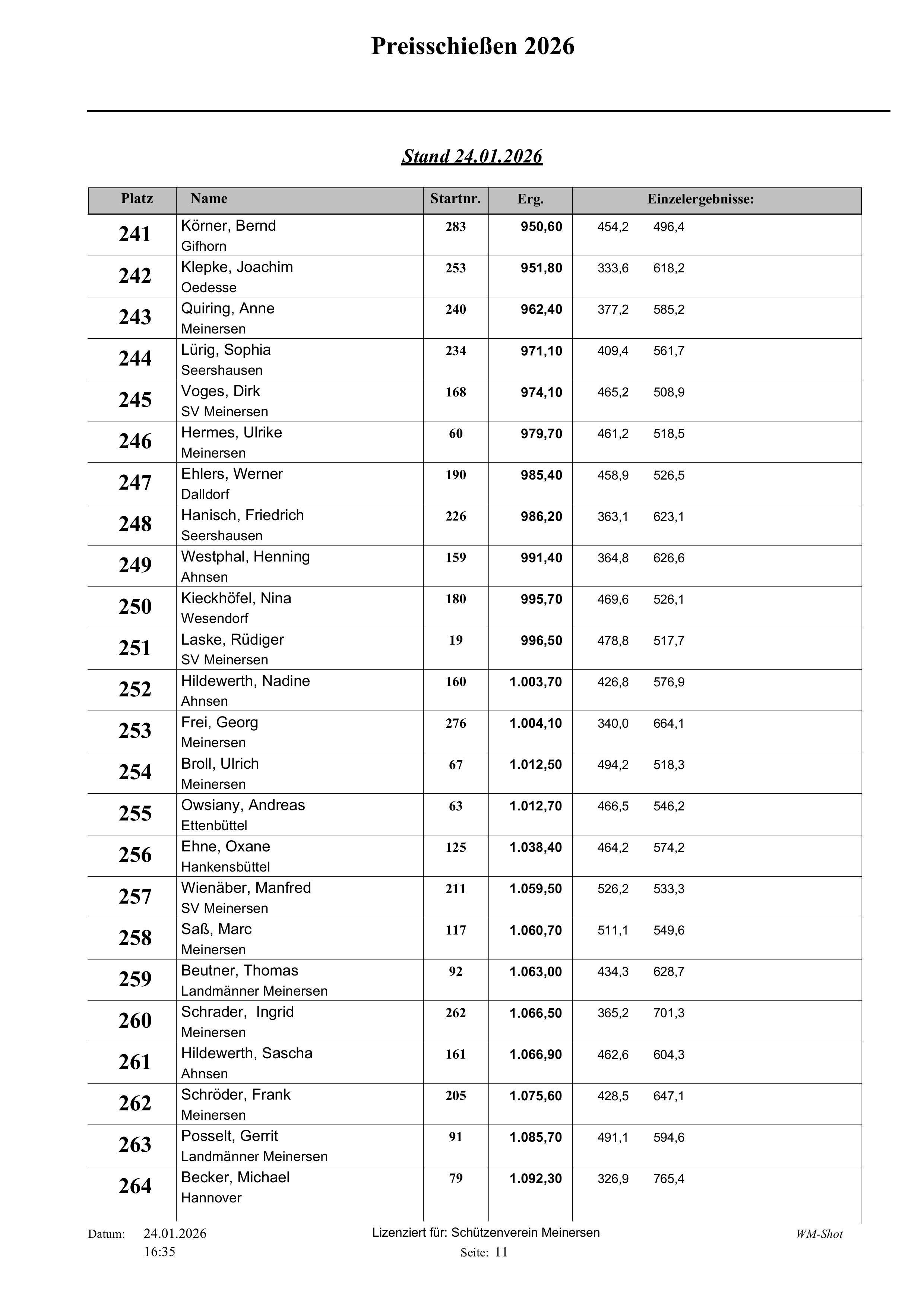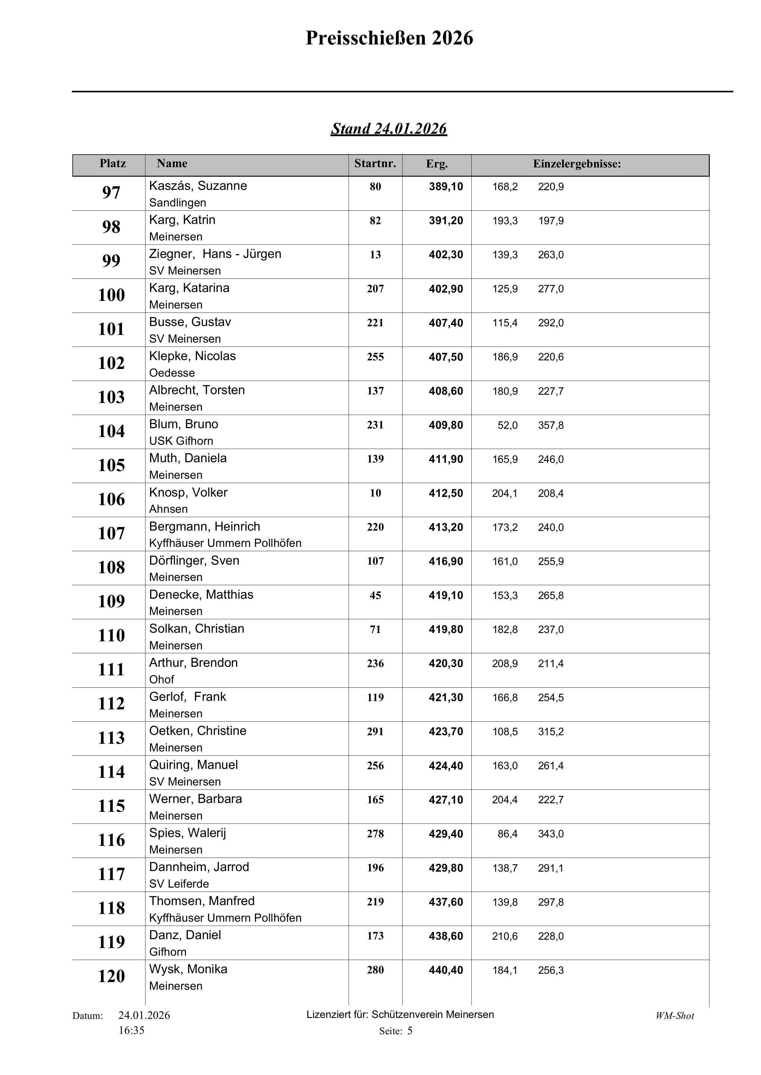 Fast 320 Teilnehmer haben in den letzten 13 Tagen am diesjährigen Preisschießen beim Schützenverein Meinersen teilgenommen.