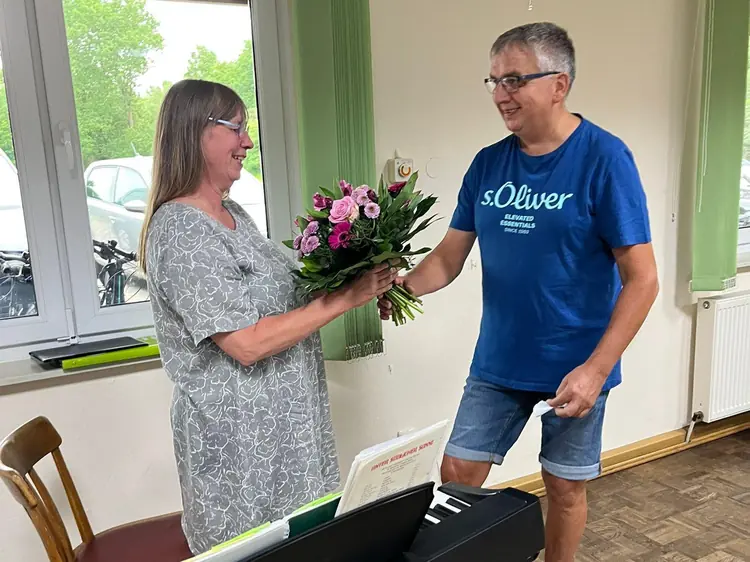 Im Rahmen der Chorprobe am 18. Juni 2025 gratulierten die Sänger des Männergesangvereins Seershausen ihrer Chorleiterin Claudia von der Brelje herzlich zur